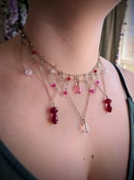A light rose gold chain with small and medium, round and tear dropped beads. A delicate and elegant necklace.