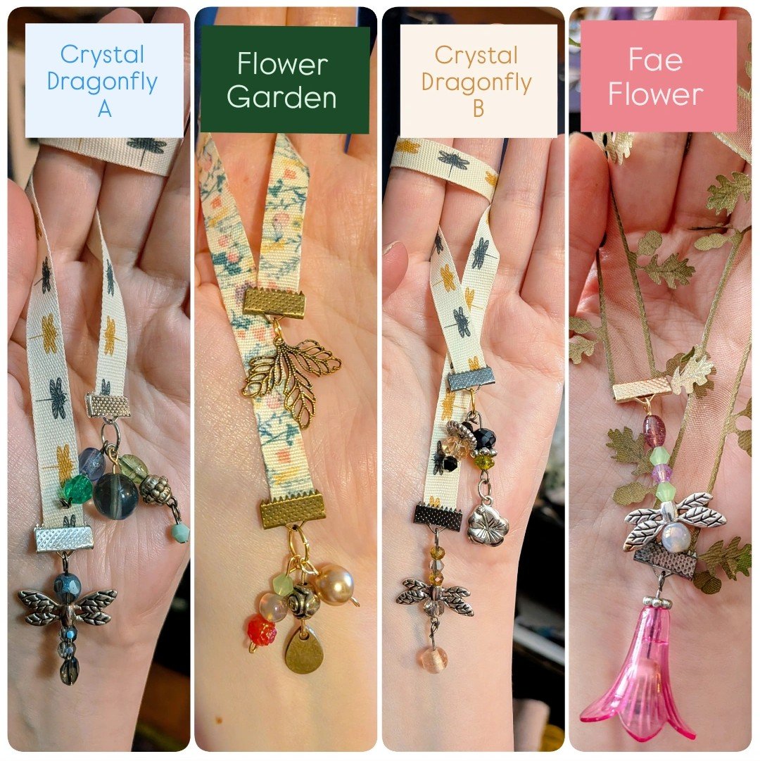 With a variety of deigns and colors of ribbon, each one has different charms and beads. Cute lightweight bookmarks that fit perfectly in any book, flat and smooth ribbon holds you page and gives a extra little special flare to that special book.