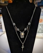 Silver spike & sword layered necklace.