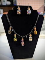 Bottles of "poison" necklace and earrings.